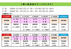 2026冬季営業について「週末営業体制」といたします。